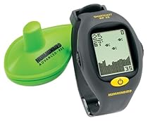 - Wrist-mounted fishfinder features 1.25-inch high-visibility display with 48 x 32 pixels of resolution